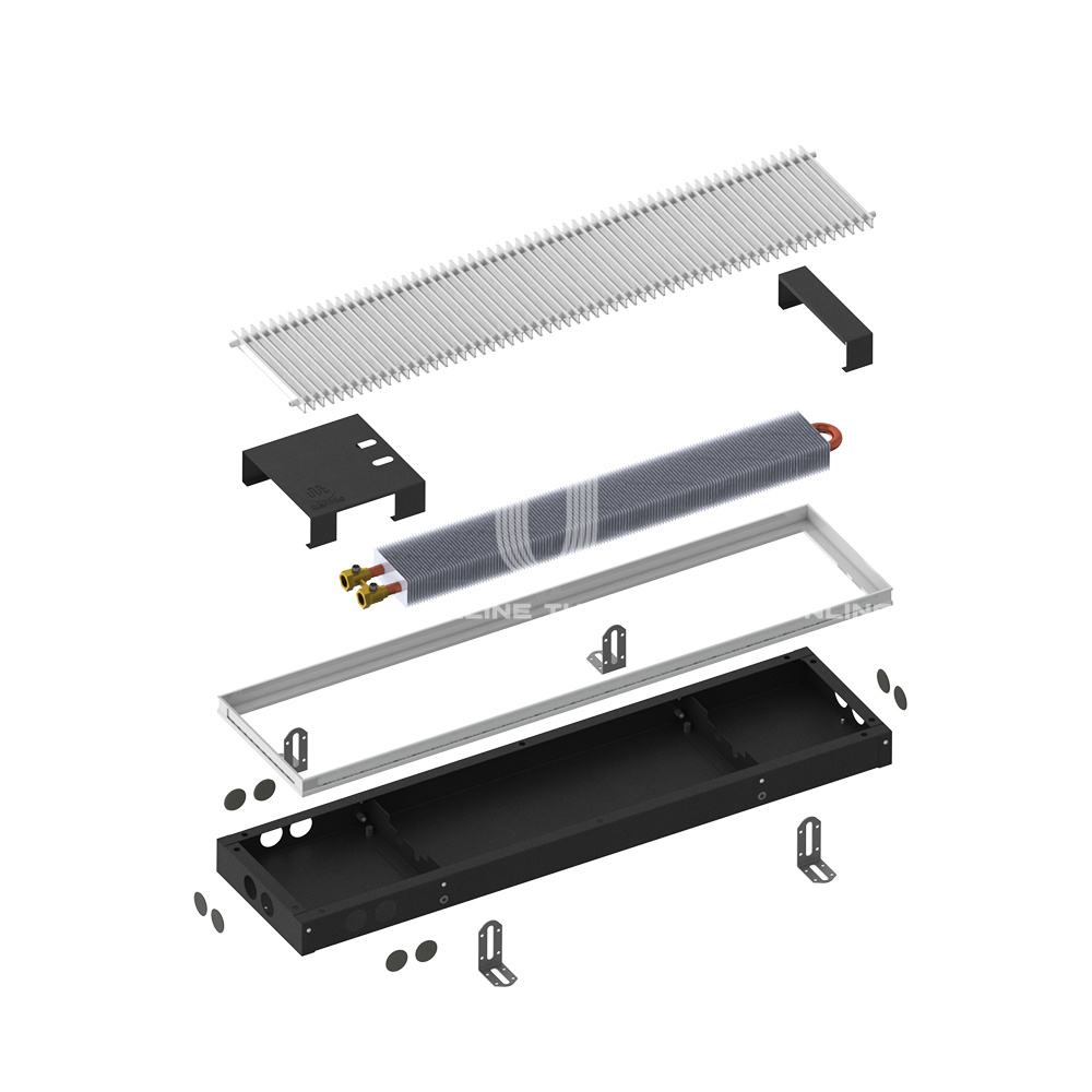 Небольшая высота конвекторов серии ITT (8 см, 9 см, 11 см, 14 см, 19 см) позволяет монтировать их в пол малой глубины. Данные конвекторы целесообразно располагать у окон с большой стеклянной поверхностью.