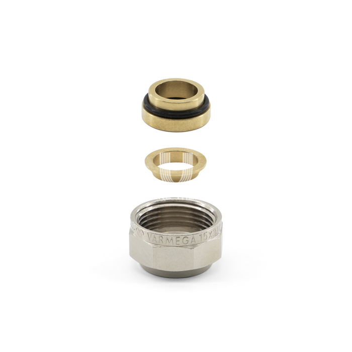 Резьбозажимное соединение Varmega VM09302 – это латунный обжимной фитинг с обжимным кольцом и резиновым уплотнением, который используется для подключения радиаторной трубки (медной или стальной) с размером 15х1.0 мм к отопительному прибору или к вентилю через присоединение G3/4".