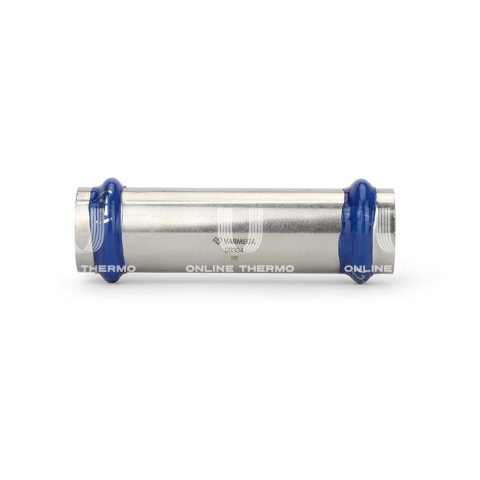 Муфта двухраструбная надвижная Varmega Inox Press равносторонняя, используется для соединения труб равных диаметров. В отличие от стандартной муфты, надвижная не имеет упор в середине корпуса, что позволяет ей перемещаться по поверхности трубы, а монтажнику – выполнить пресс соединение даже в самых узких местах. Для получения надежного неразъемного соединения трубы и фитинга потребуется специальный пресс-инструмент с насадками типа профиль «V».