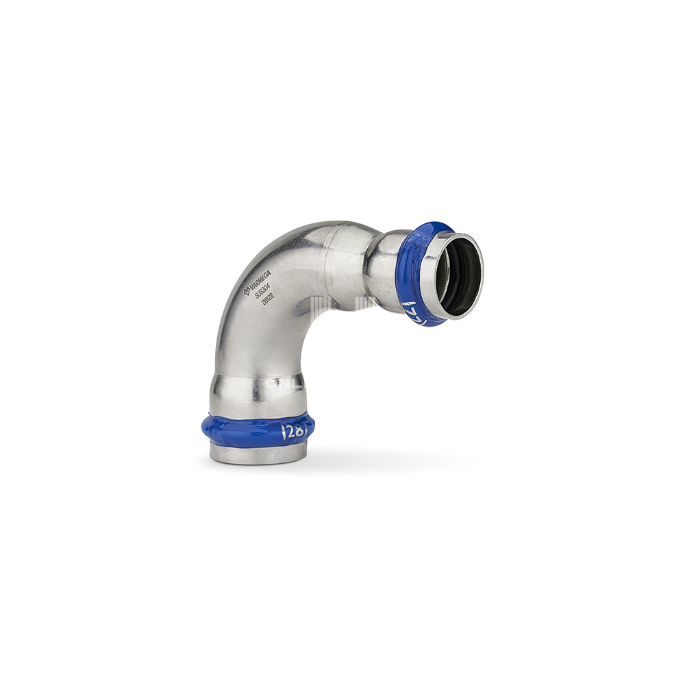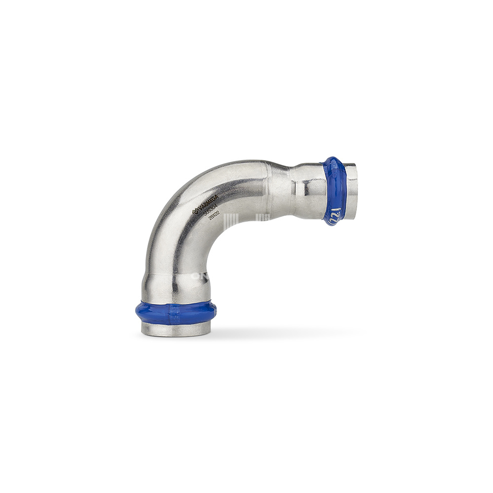 Угольник переходной 90° двухраструбный Varmega Inox Press используется для соединения труб разных диаметров под углом 90 градусов. Для получения надежного неразъемного соединения трубы и фитинга потребуется специальный пресс-инструмент с насадками типа профиль «V».