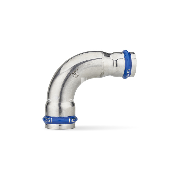 Угольник переходной 90° двухраструбный Varmega Inox Press используется для соединения труб разных диаметров под углом 90 градусов. Для получения надежного неразъемного соединения трубы и фитинга потребуется специальный пресс-инструмент с насадками типа профиль «V».