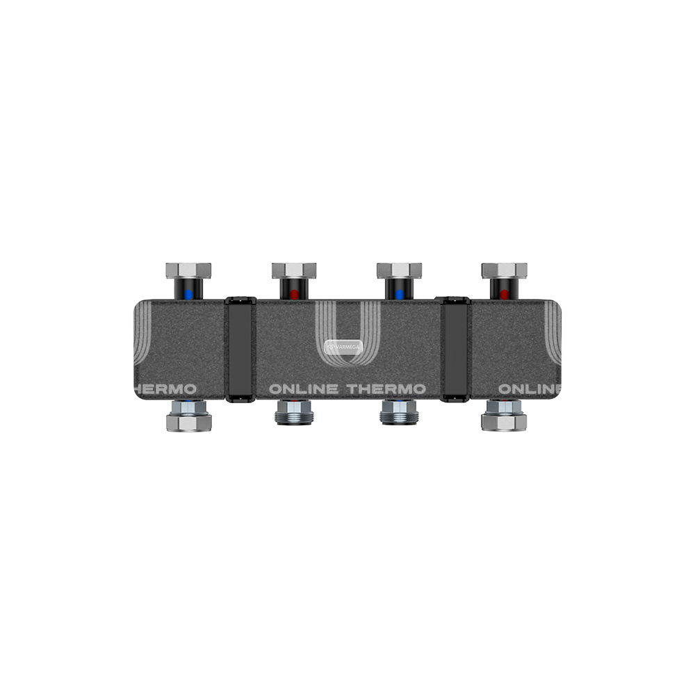 Распределительные коллекторы (распределительные гребенки) Varmega V-Flow изготавливаются из стали с черным покрытием с парными подключениями сверху и снизу.