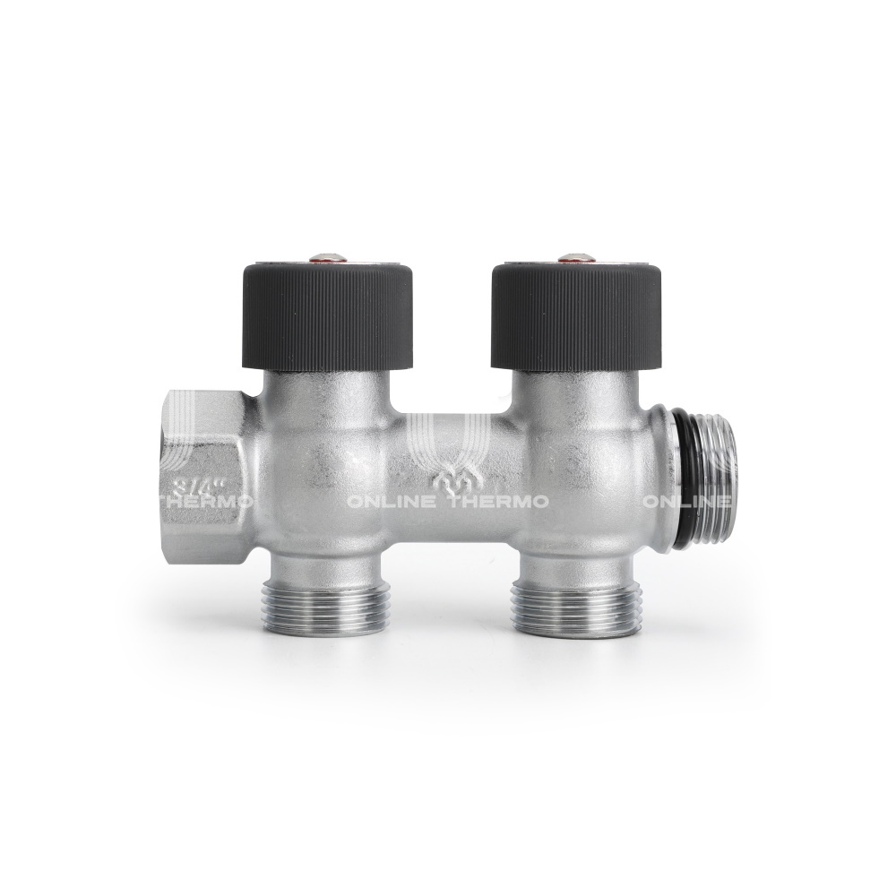 Распределительные коллекторы с регулировочными клапанами соединяются по принципу модульности. Благодаря специальной конструкции резьбы с самоуплотняющимся кольцом обеспечивается герметичность и центровая соосность. Расстояние между отводами составляет 50 мм.