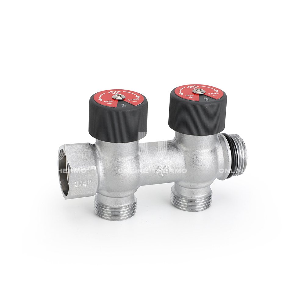 Распределительные коллекторы поставляются с размером основной магистрали 3/4" или 1" и могут иметь два, три или четыре выхода с наружной резьбой 3/4"EK.