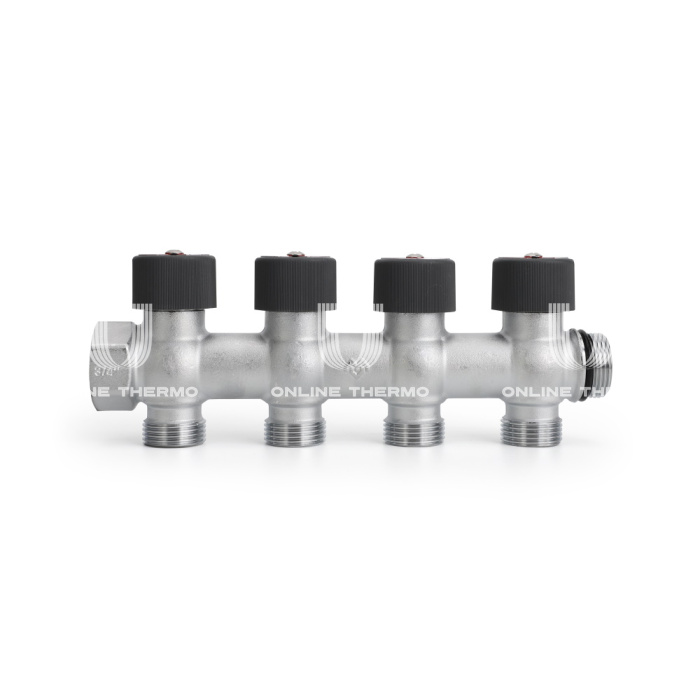 Коллектор с регулировочными клапанами Varmega VMMM03-C05154 3/4", на 4 выхода 3/4"ЕК, хромированный