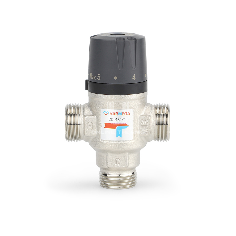 Термостатический смесительный клапан Varmega VM17302 НР 3/4", Kvs 1.6, PN 10, смешение в бок, 20-43°С