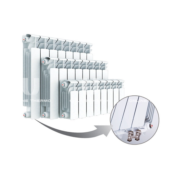 Радиаторы Rifar Base предлагаются в трех вариантах с межосевым расстоянием 200 мм, 350 мм и 500 мм с количеством секций от 4 до 14. Стандартная серия Base идет с боковым подключением, а серия Base Ventil идет с нижним подключением. Для радиаторов с расстоянием 500 мм и 200 мм глубина составляет 100 мм, а для радиаторов с межосевым расстоянием 350 мм глубина составляет 90 мм.Такая большая глубина позволяет достичь больших показателей по теплоотдаче, которая является одной из самых высоких среди аналогов.