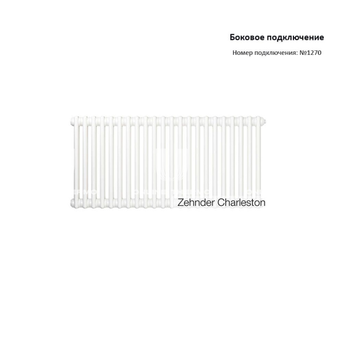 Радиаторы Zehnder Charleston с в белом исполнении с эмалью цвета RAL 9016 поставляются с подключением № 1270 (боковое, одностороннее) или с подключением № V001 (верхний термовентиль, подключение нижнее, одностороннее). В подключении № V001 термостат (термоголовка) покупается отдельно.