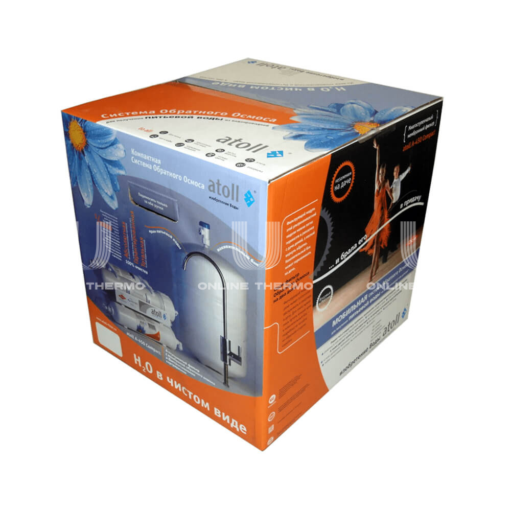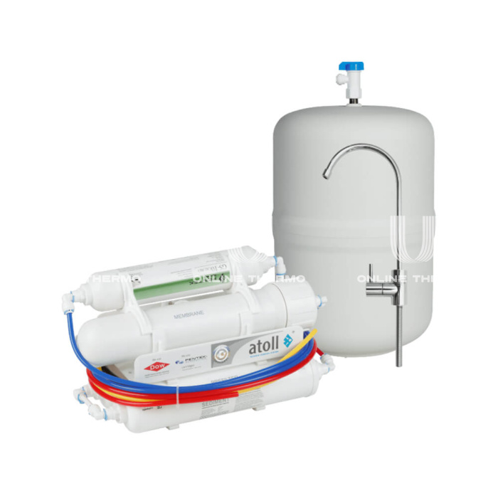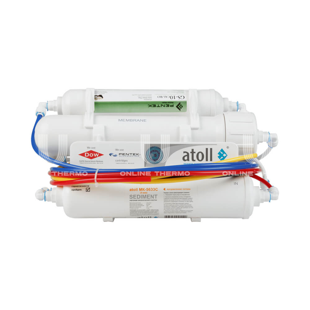 Система очистки воды на основе обратного осмоса Atoll A-450m Compact STD с минерализатором. Предназначена для доочистки воды в бытовых условиях и ее последующего употребления в пищу, а также других целей. Удаляет до 99,9% всех примесей содержащихся в воде и предотвращает образование накипи в нагревательных приборах. Фильтрация осуществляется за счет прохождения воды под напором через полупроницаемую мембрану, которая пропускает только молекулы воды и кислорода.