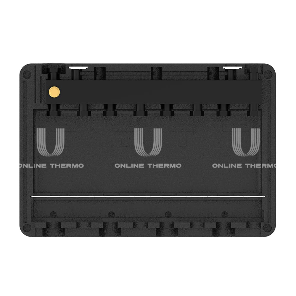 Теплоизоляционный блок с коллектором идеально подходит для установки в него различных комбинаций насосных групп Varmega V-Box серий VMPG21, VMPG22 и VMPG23.