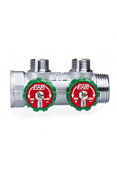 Модульные регулирующие коллекторы (гребенки) серии Multifar итальянского производителя FAR используются в системах ГВС и ХВС, их также можно применять в отопительных системах радиаторного и напольного отопления. Коллекторы оснащены регулирующими кранами, с помощью которых, при необходимости, можно перекрыть каждую трубу в отдельности. В базовой комплектации коллекторы предлагаются с двумя, тремя или четырьмя отводами. В случаях, когда необходима магистраль с другим количеством отводов, то коллекторы между собой модульно соединяются в гребенку с необходимым количеством отводов. Ручки регулирующих вентилей комплектуются двусторонними сине-красными дисками и дисками с обозначениями сантехнических точек (туалет, стиральная машина, раковина, душ, биде и т. д.) Модели коллекторов также различаются между собой по типу присоединения отводов – под евроконус и под плоское соединение, ТР - обозначение плоского соединения фитинга.