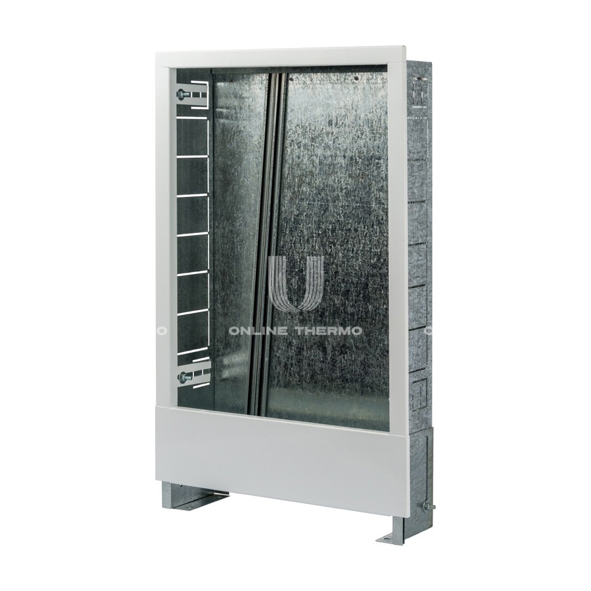 Встраиваемые шкафы имеют выдвижные ножки, регулируемые по высоте до 90 мм, а выдвижная лицевая рамка позволяет изменять глубину установки со 125 мм до 195 мм. Крепление шкафа к полу осуществляется через отверстия в ножках, а фиксация его в нише стены – за счет отгибных фиксаторов.